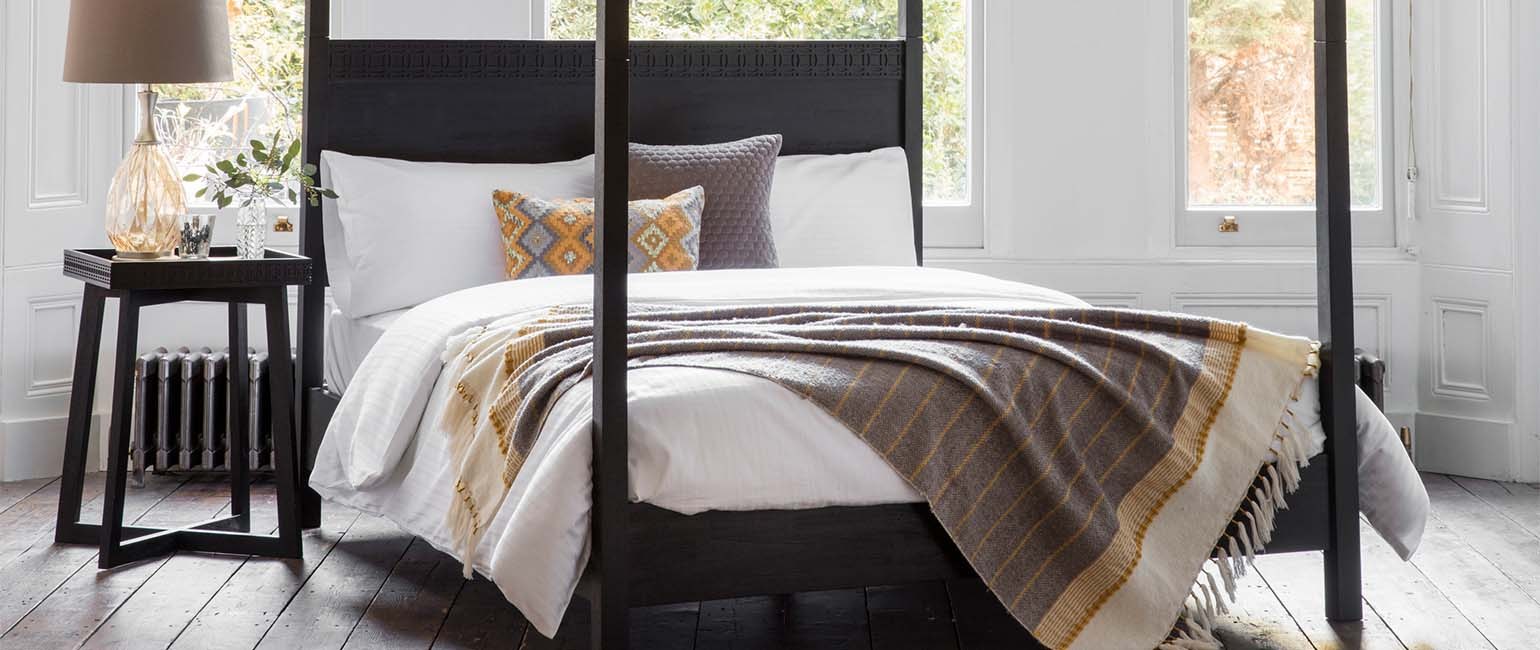 Make a bold statement in your bedroom with the Bradstreet Four Poster Bedframe, beautifully finished in a sophisticated matt black charcoal. Crafted from a striking combination of Mango Wood, Teak, Mahogany, and Mindy Ash, this bedframe offers both durability and distinctive character. The tall, minimalist frame is paired with a detailed...
