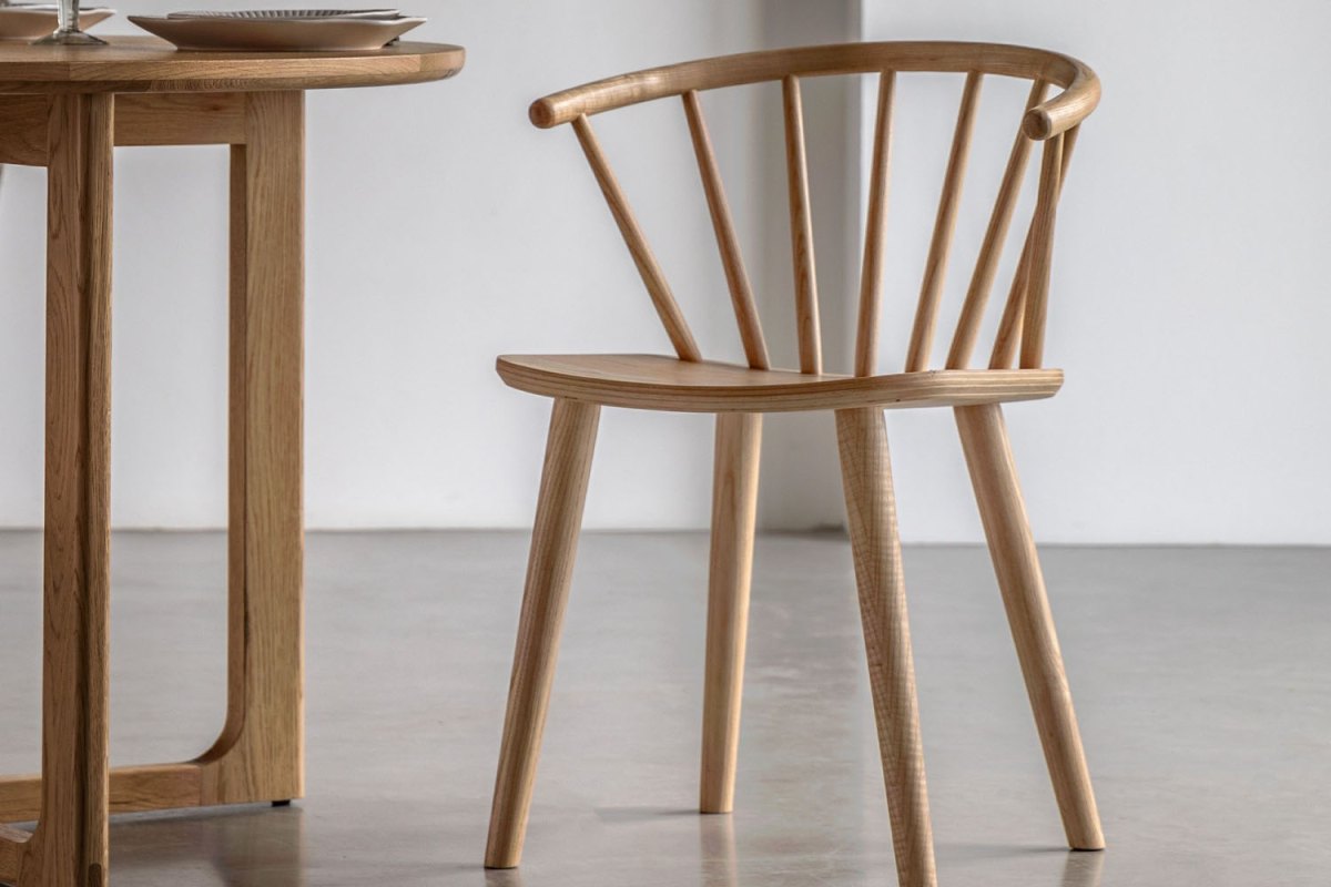 Sold as a pair, the Cadoc Natural Oak Dining Chairs bring timeless style and everyday comfort to your dining space. Crafted with elegant turned legs and refined back spindles, each chair showcases classic detailing with a light, contemporary feel. The gently shaped seat offers comfortable support, while the natural oak finish highlights the beauty of the wood grain, adding warmth and character to your room.