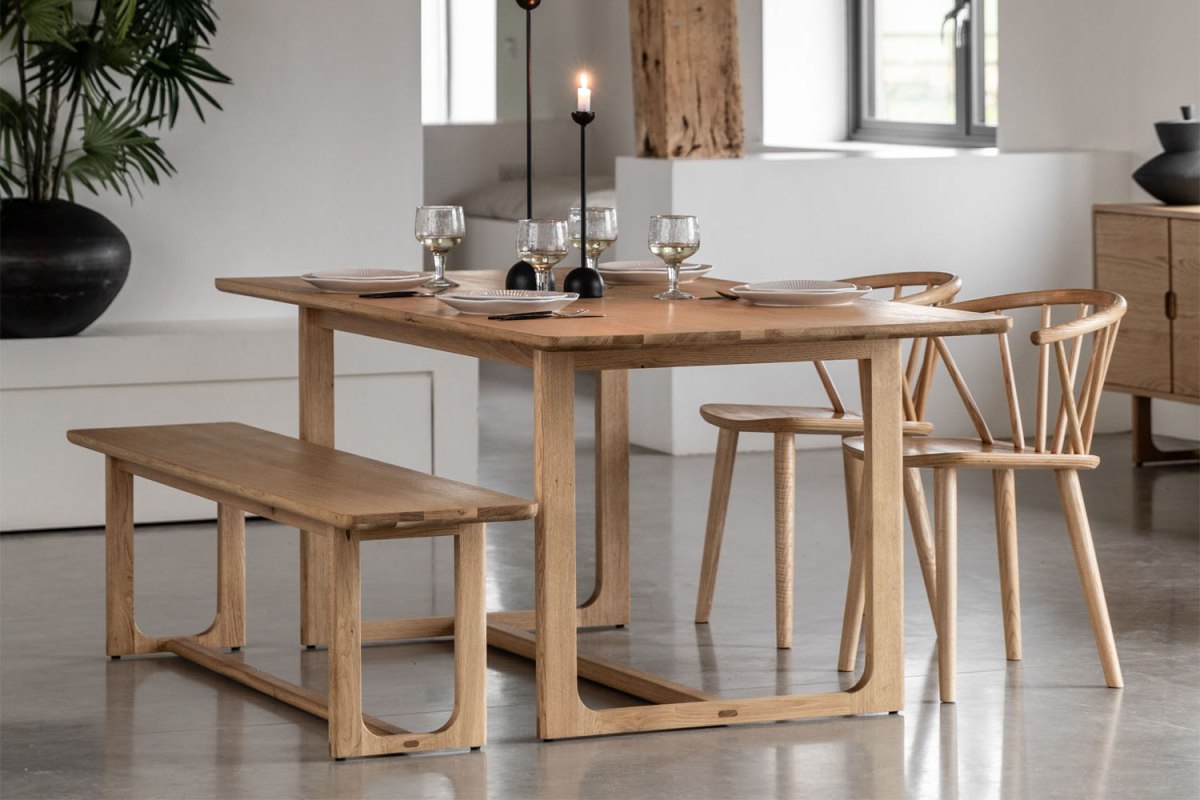 Beautifully crafted with a timeless, understated feel, the Cadoc Natural Oak Fixed Dining Table is made from the finest solid oak, with structural oak veneers used where practical. The clean, simple tabletop is paired with a gracefully shaped underframe, creating an elegant design that suits both contemporary and classic interiors. Finished in a warm natural oak tone that highlights the character of the wood grain, it pairs perfectly with the matching Cadoc dining chairs or bench.