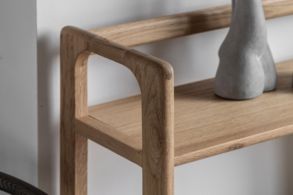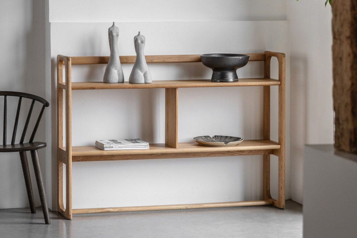 Elegant and versatile, the Cadoc Natural Oak Wide Open Display Unit is crafted from the finest solid oak, with structural oak veneers used where practical. The natural oak finish highlights the warmth and character of the wood grain, while the wide, open shelving creates a clean, balanced look that suits both modern and classic interiors. Ideal for displaying books, ceramics and decorative pieces, it brings a calm, organised feel to your living or dining space.