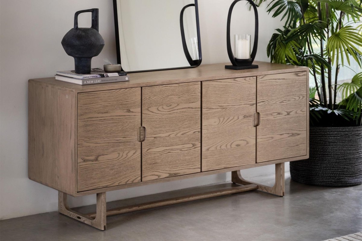 A beautifully balanced blend of craftsmanship and understated design, the Cadoc Smoked Oak 4 Door Sideboard is crafted from the finest solid oak, with structural oak veneers used where practical. The smoked oak finish enhances the depth and character of the wood grain, giving the piece a rich, refined presence within your living or dining space.