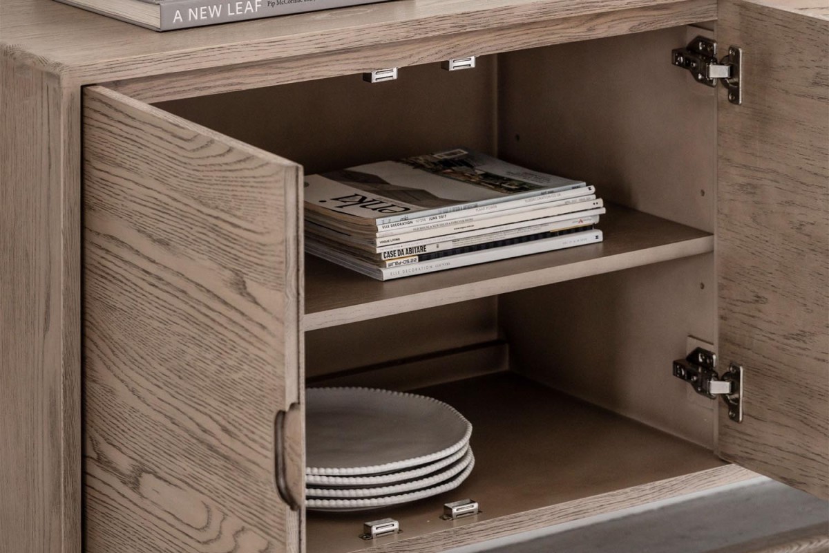 Finger-jointed detailing on the exposed corners, a technique reserved for high-quality cabinetry, adds both strength and a sense of tradition, ensuring this sideboard is built to last and be enjoyed for generations. Also available in a natural oak finish, with matching pieces available to complete the Cadoc range