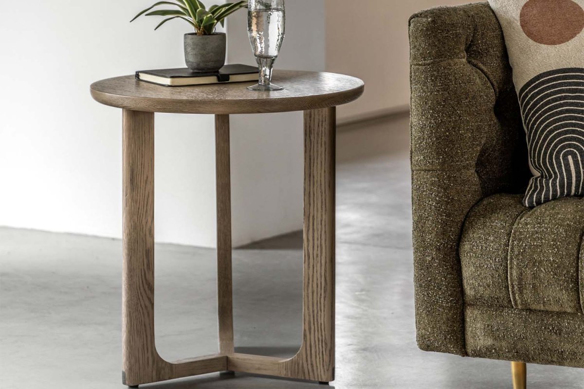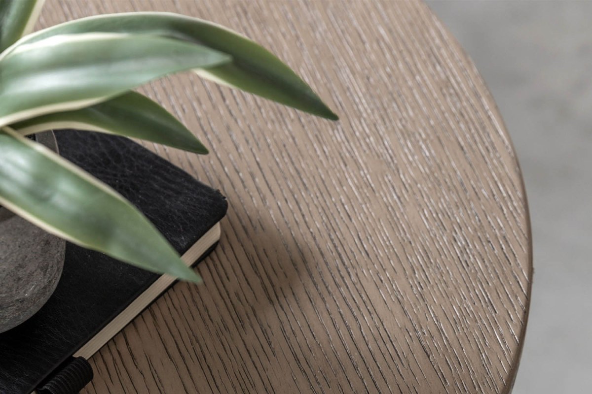 Elegant and understated, the Cadoc Smoked Oak Side Table is beautifully crafted from the finest solid oak, with structural oak veneers used where practical. The simple round tabletop is paired with a gracefully shaped underframe, creating a refined look that works effortlessly in a variety of interiors. Finished in smoked oak to enhance the depth and character of the wood grain, it’s perfect beside a sofa, armchair or bed.