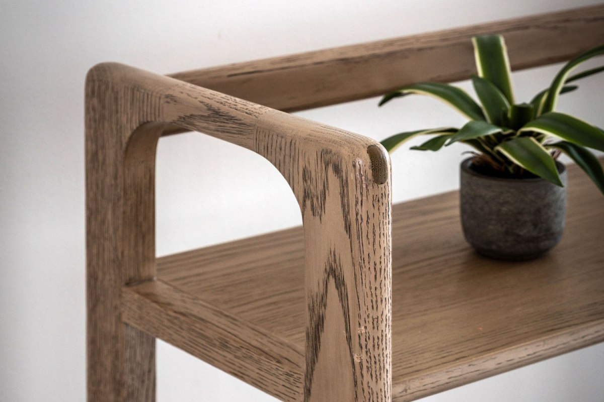 Elegant and versatile, the Cadoc Smoked Oak Wide Open Display Unit is crafted from the finest solid oak, with structural oak veneers used where practical. The rich smoked oak finish enhances the depth and character of the wood grain, while the wide, open shelving creates a clean, balanced look that works beautifully in both modern and classic interiors. Ideal for displaying books, ceramics and decorative pieces, it brings a warm, composed feel to your living or dining space.