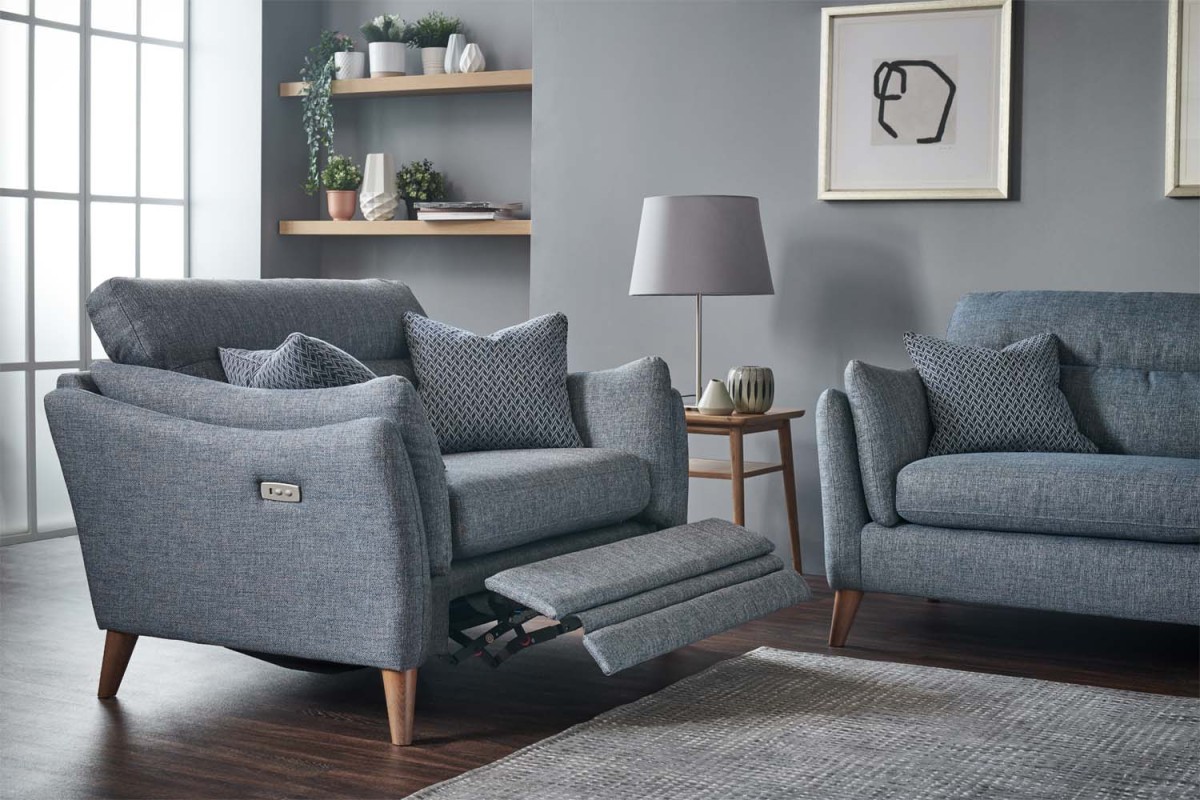 Compact in size but big on comfort, the 2 Seater Recliner Sofa is perfect for smaller living spaces. With motorised footrests, you can recline at the touch of a button for ultimate relaxation. Generous seat cushions and plush fibre backs provide supportive comfort, while slim arms and raised hardwood legs keep the look contemporary and light.
