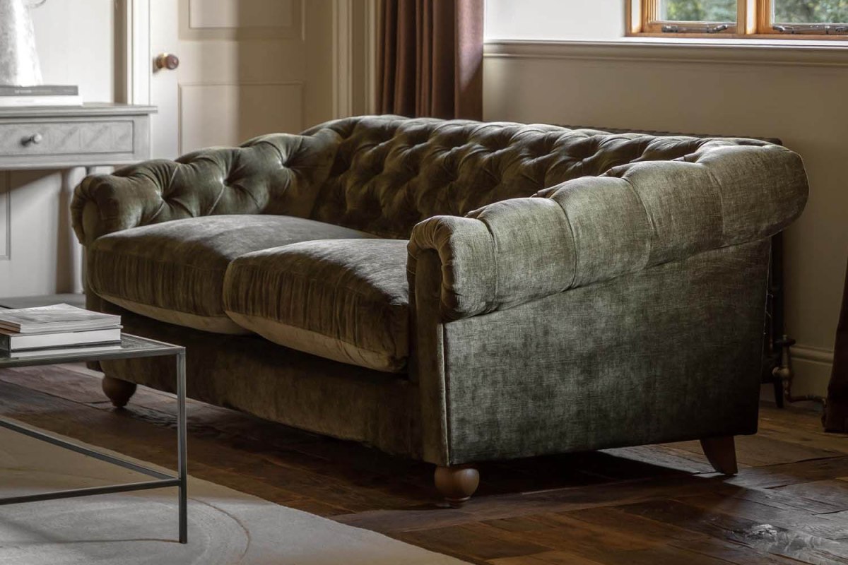 The Charleston 3 Seater Sofa brings character and refinement to your living space, blending classic design features with comfort suited to everyday use. Beautifully detailed with a deep-buttoned back, softly scrolled arms and a gently contoured silhouette, it creates a striking yet inviting focal point. Designed for lasting comfort, the seat cushions combine supportive foam and fibre fillings with pocket springs for excellent resilience and bounce. Solid ash legs provide a natural finishing touch, adding to the sense of quality and craftsmanship.