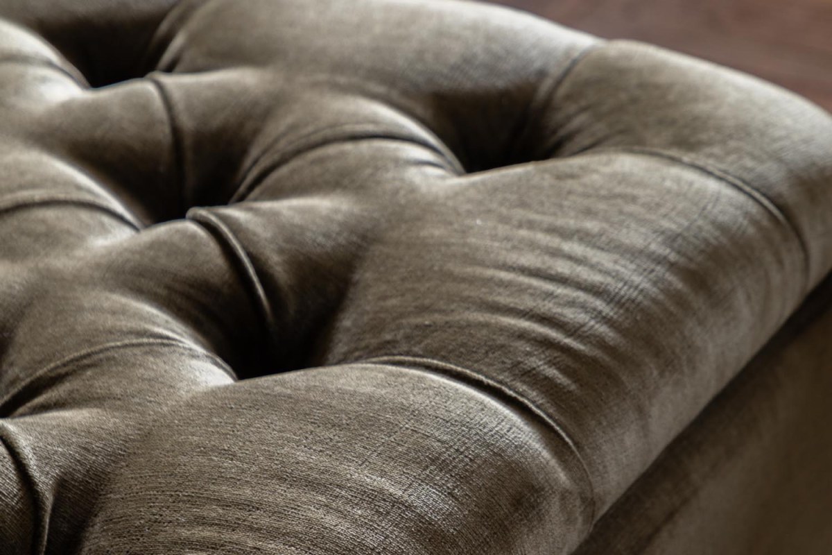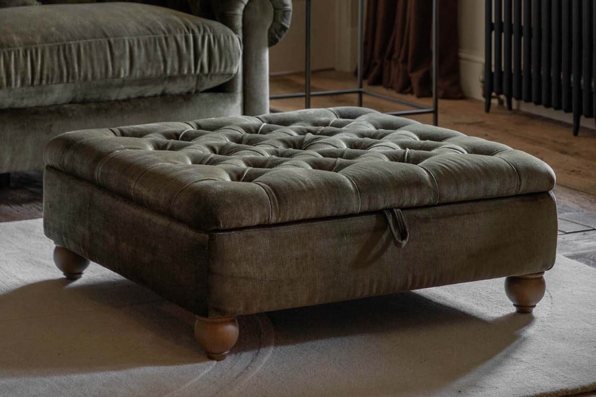 The Charleston Footstool is designed to complement the collection beautifully, bringing both comfort and practicality to your living space. Featuring a deep-buttoned top and solid ash turned legs, it reflects the classic detailing found across the Charleston range. As well as providing the perfect place to put your feet up, the lift-up top reveals a useful hidden storage compartment, ideal for keeping blankets and everyday essentials neatly tucked away.