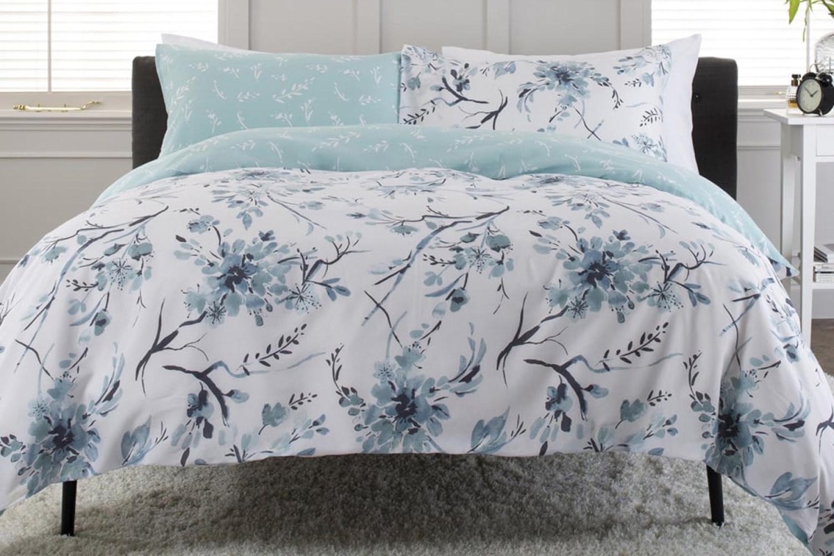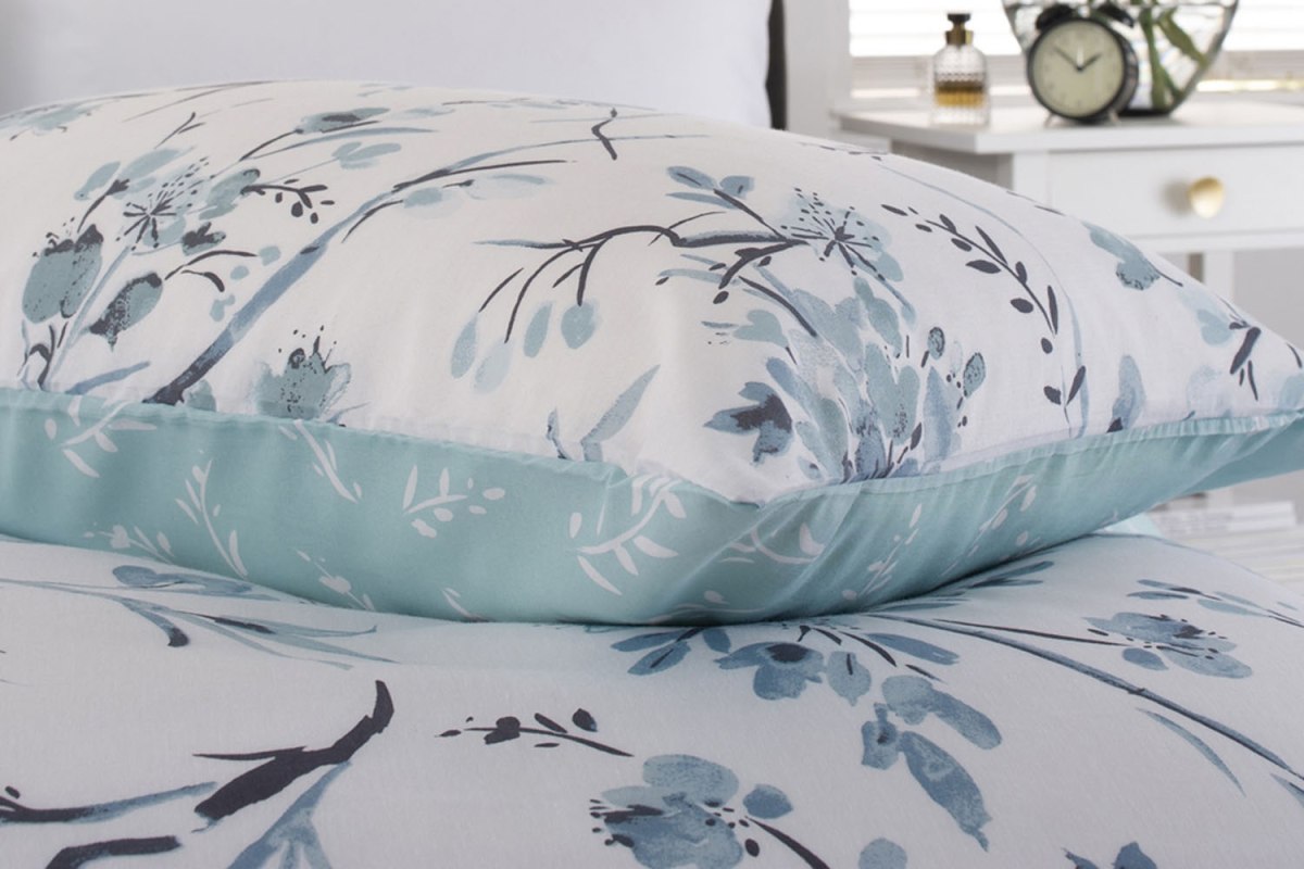 The Cherry Blossom Blue Duvet Set brings a calm, elegant feel to your bedroom with its beautifully detailed floral design. Featuring large-scale cherry blossoms across the front and a delicate two-tone leaf pattern on the reverse, it offers two stylish looks in one, allowing you to refresh your space with ease. Made from a cotton-rich blend of 55% responsibly sourced cotton and 45% polyester, this duvet set feels soft and comfortable while remaining practical for everyday use. Easy to care for, it is machine washable at 40°C, tumble dry safe on a low heat and finished with a button fastening. Available in double size only.
