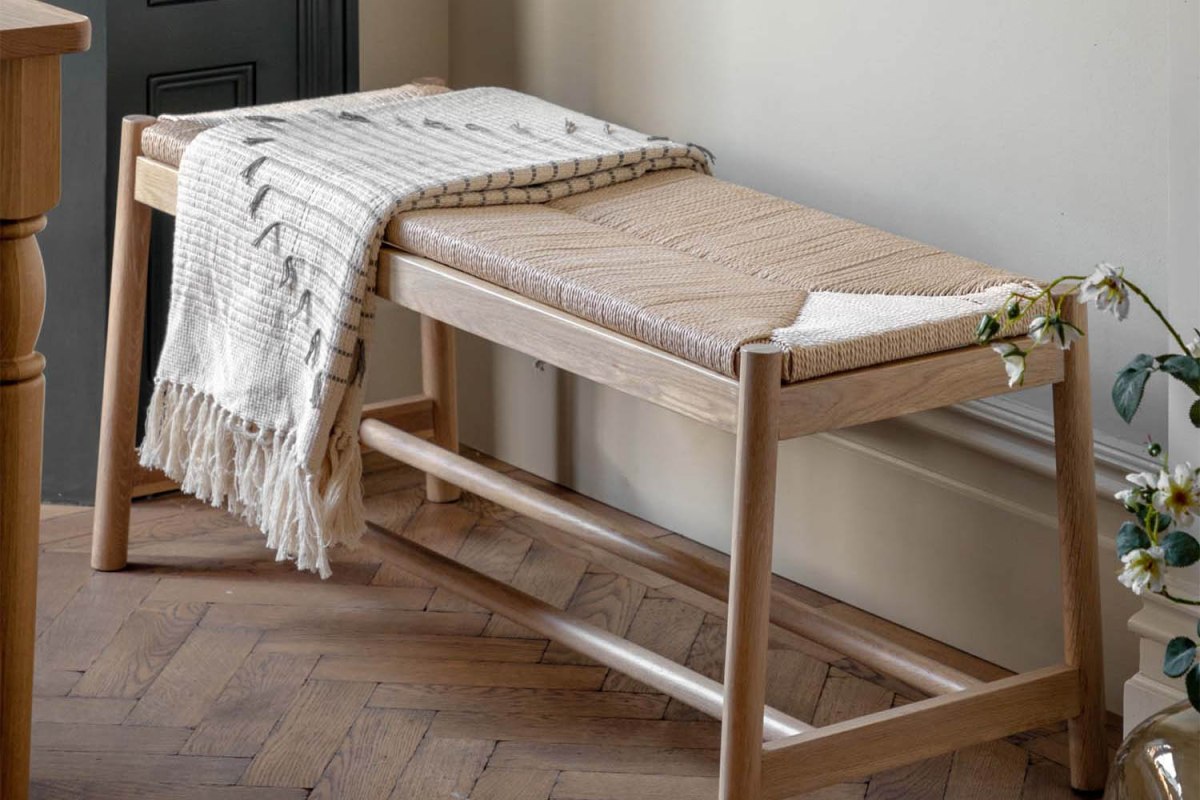 Ethan Oak Dining Bench with Woven Seat