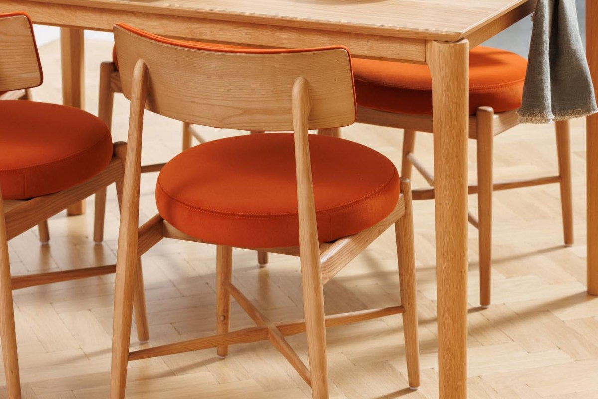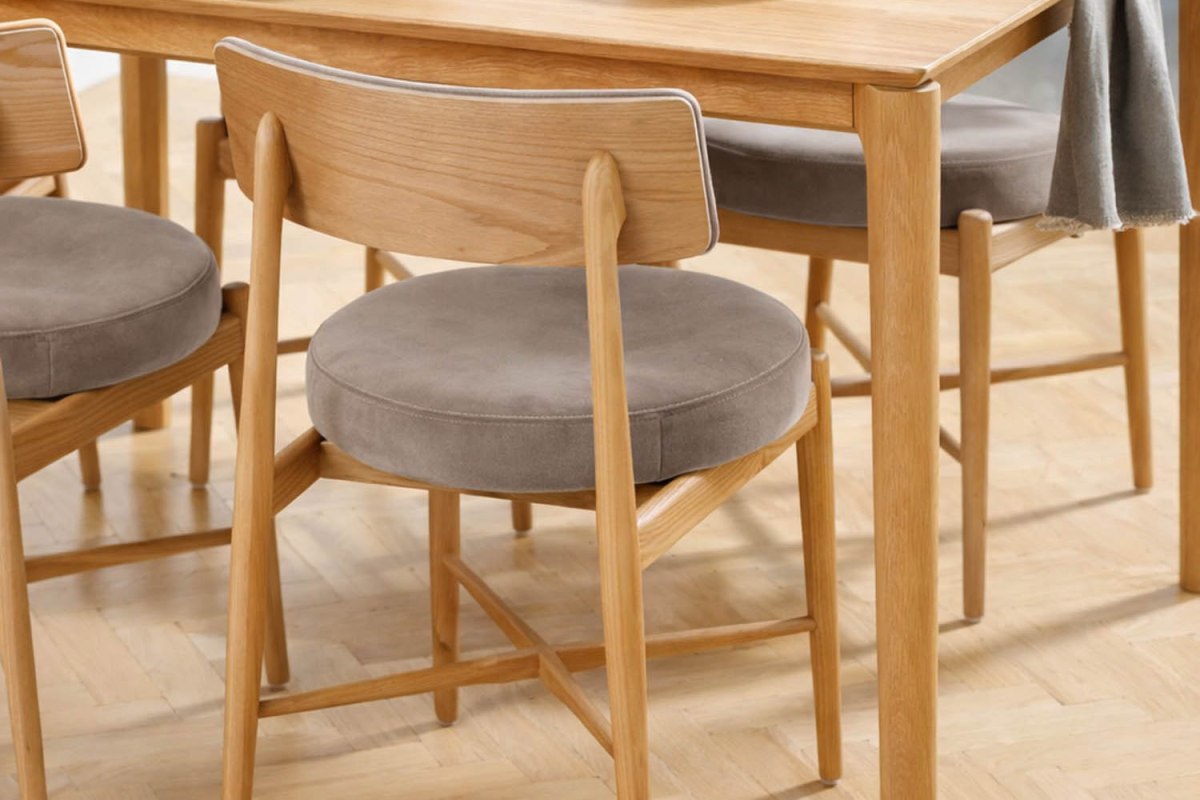 The Winchester Flora Dining Chair combines elegant design with everyday comfort. Crafted with a beautifully shaped solid oak frame, the chair features a distinctive curved wooden back and a generously padded round seat for relaxed dining. Upholstered in soft velvet, the Flora chair is available in either vibrant orange or subtle grey, allowing you to choose a look that suits your space. Designed to pair perfectly with the G Plan Winchester dining tables, it brings both style and comfort to any dining setting.
