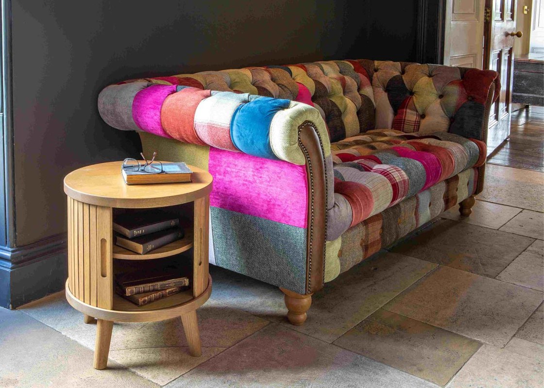 The Grantley is a real statement piece, adding an element of joyful colour to your room. The classic Chesterfield design is expertly upholstered in a mix of genuine Harris Tweed, wool and real leather. The idea arose from a desire to use the offcuts of material that accumulate when making upholstery, and it has proved a gem of an idea and the result is a range of very desirable, and totally unique pieces.