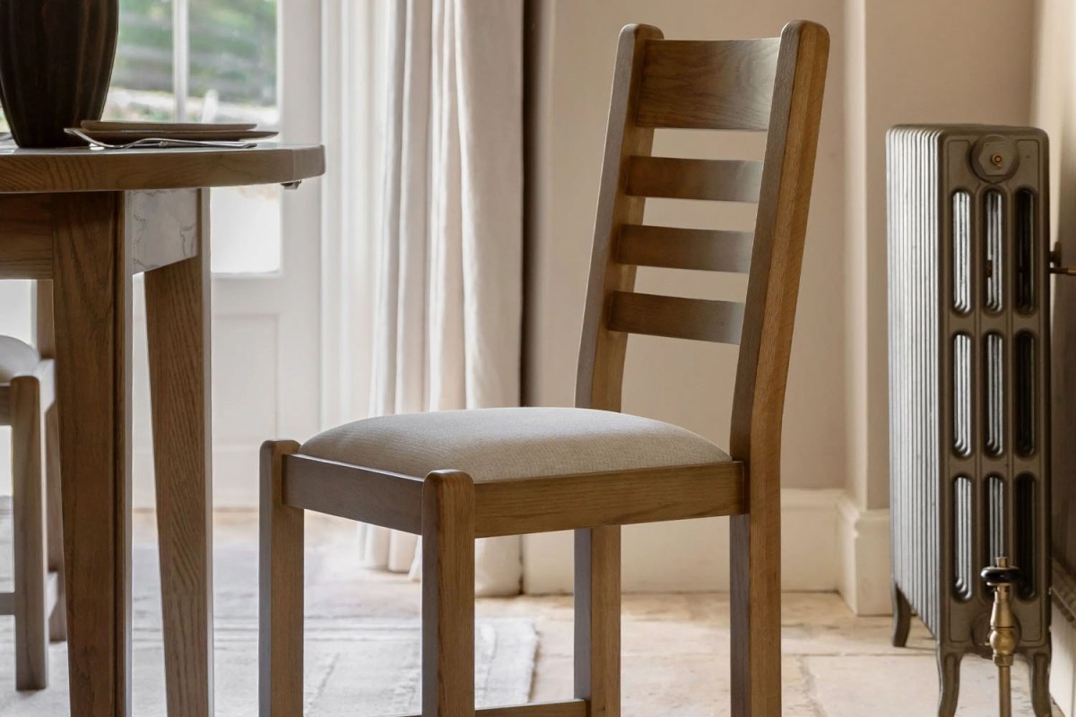 The Haddon Dining Chair combines durability, comfort and classic design. Its sturdy wooden frame features clean lines and a traditional slatted back, while the cushioned neutral-tone seat offers supportive comfort for everyday meals or special occasions. Versatile and easy to style, this chair blends effortlessly with a wide range of dining spaces and décor.