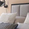 A striking headboard of two rows of padded square panels set within a border upholstered in contrasting black fabric, Midnight 800. If preferred, the headboard can also be upholstered in the same fabric as the squares.