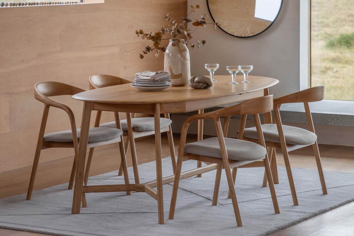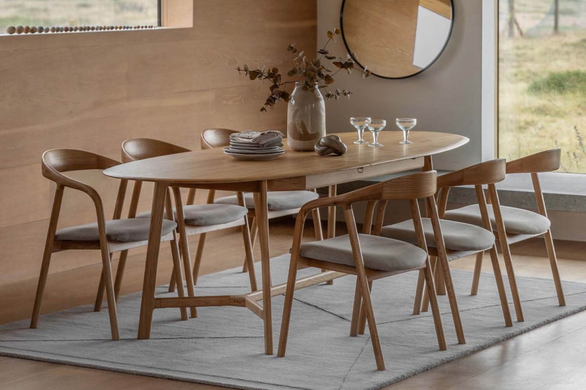A centrepiece designed for everyday dining and special occasions alike. Crafted from solid oak, this oval dining table showcases the wood’s natural grain and warm, light tones, bringing a fresh, modern feel to your space. When it’s time to host, the concealed extension opens smoothly to create extra room for guests, without disrupting the table’s clean lines. Tapered legs complete the Scandinavian-inspired silhouette, keeping the look light, refined and effortlessly stylish.