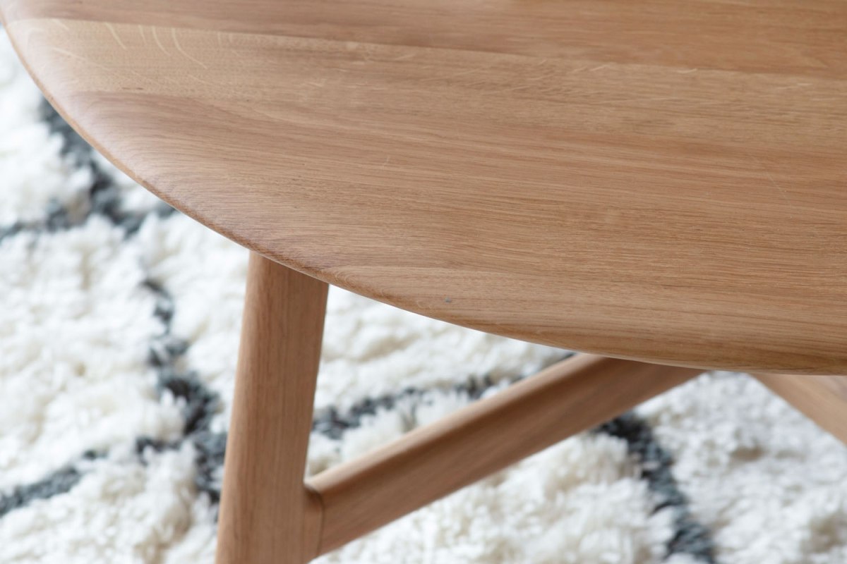 A smooth, modern take on mid-century style. Crafted from solid oak, this coffee table showcases the wood’s natural grain and warm, light tones, while soft, rounded edges create a relaxed, refined look. Ideal as a central gathering point in your living room, it brings a sense of freshness, style and subtle retro charm without overpowering the space. A compact showpiece designed for everyday living.