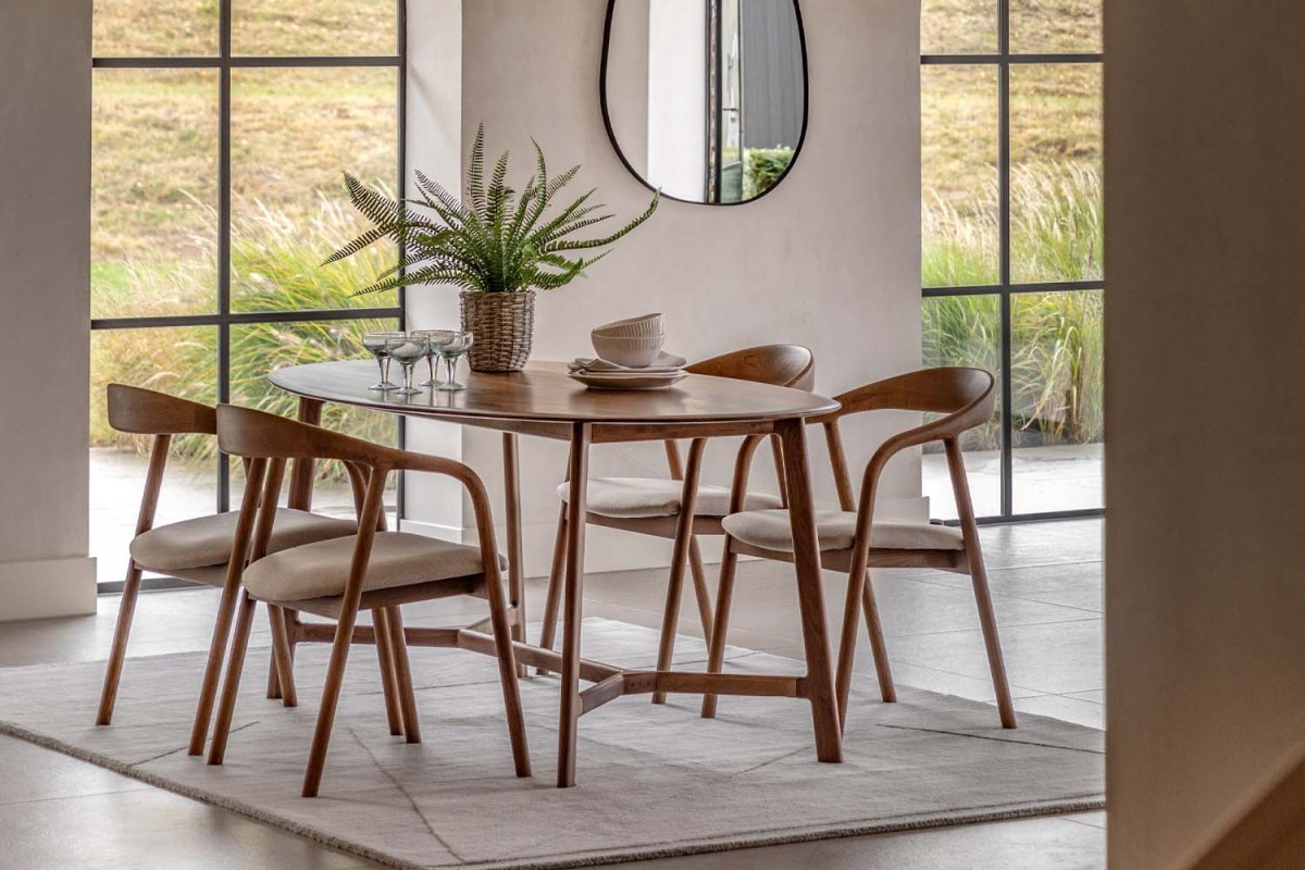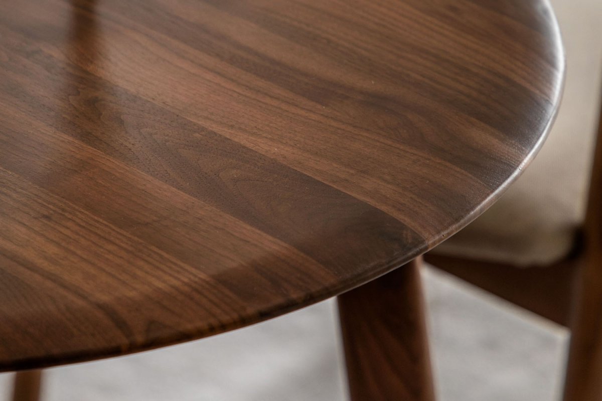 A bold statement with a soft, mid-century twist. Crafted from solid walnut, this dining table celebrates the natural beauty of the wood, with smooth curved edges that give it a gentle, sculptural feel. Its oval shape creates an inviting setting for family meals, cosy brunches, or evening gatherings, all while bringing warmth and standout style to your home. A centrepiece designed to be admired, lived with, and loved.