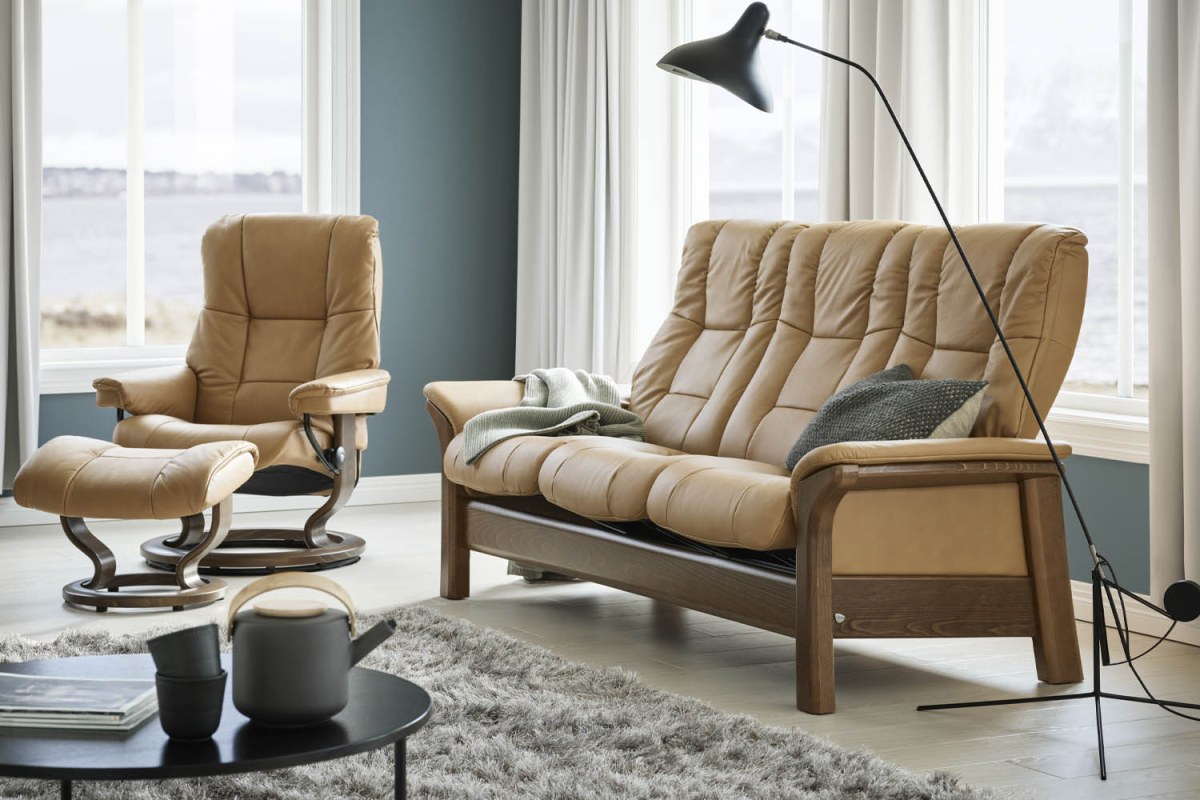 Elegant and inviting, the Stressless® Windsor sofa combines classic style with exceptional comfort. Each seat adjusts individually to support your body as you move and its soft curves, padded arms and smooth recline make it the perfect place to relax. .
