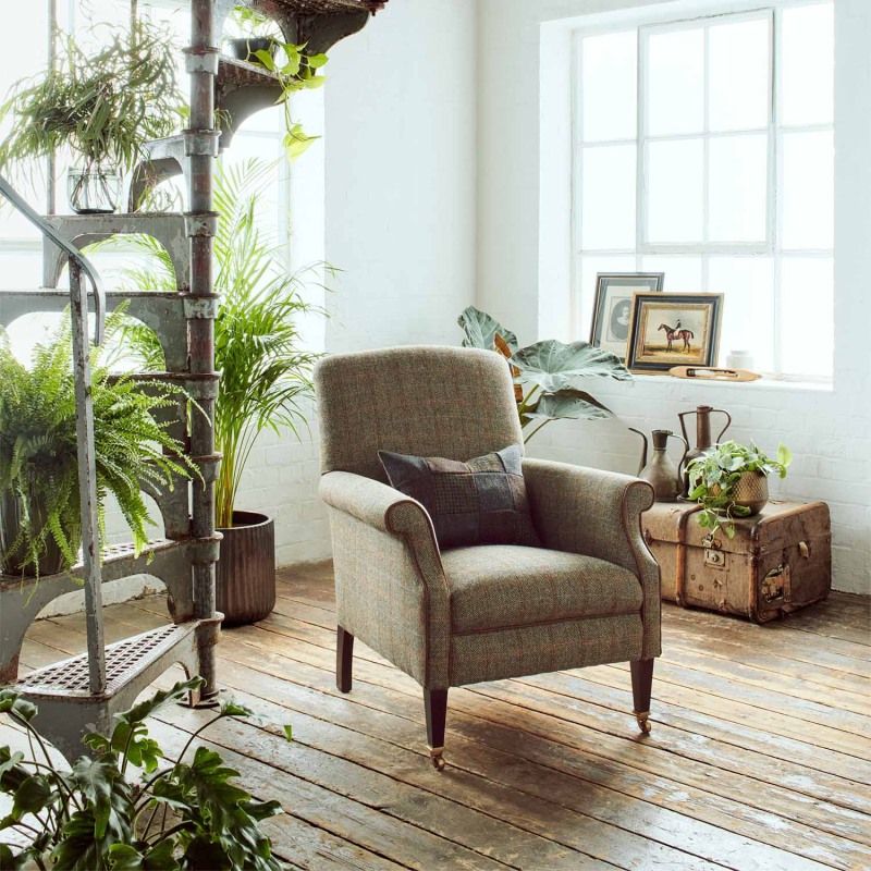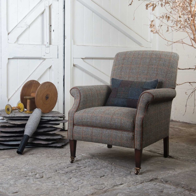 - Chair includes 1x Harris Tweed small patchwork lumbar cushion