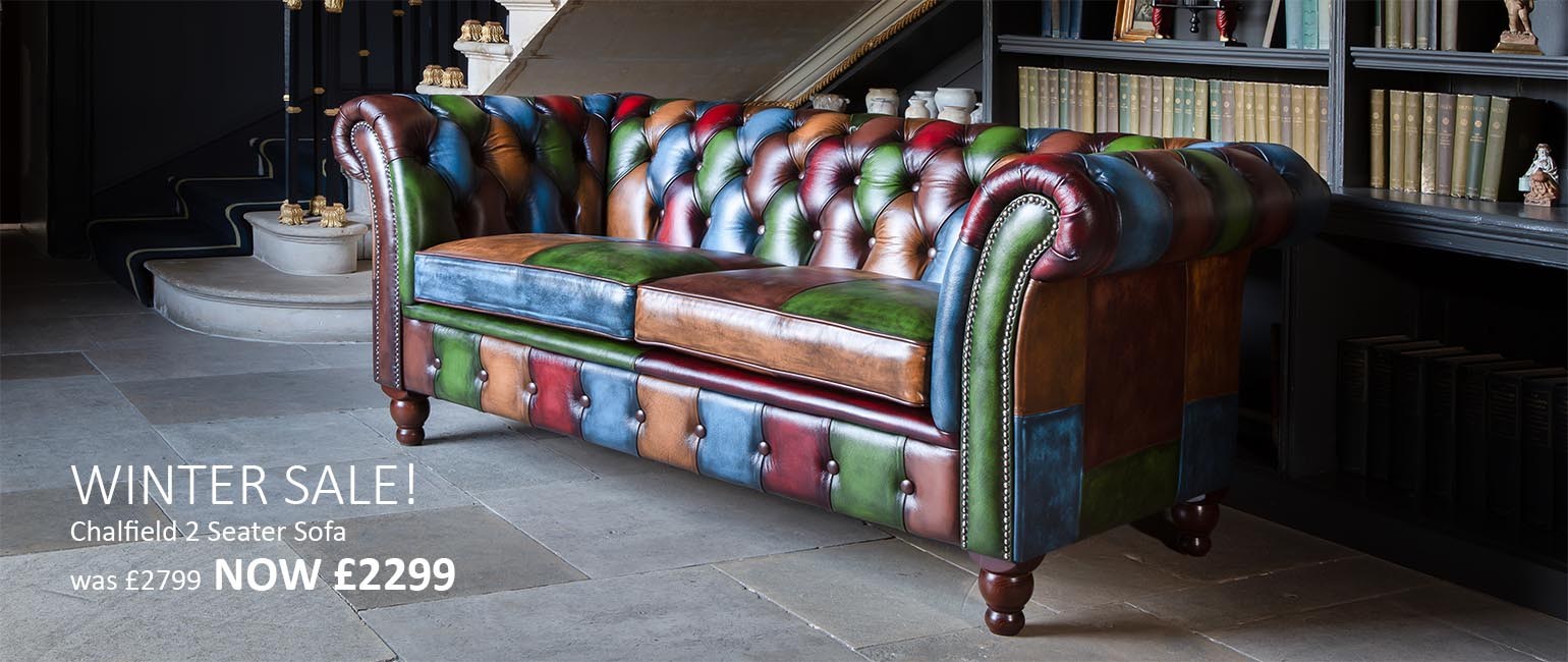 The Chalfield has a classic Chesterfield design and is expertly upholstered in real leather in a mix of colours. The idea arose from a desire to use the offcuts of material that accumulate when making upholstery, and it has proved a gem of an idea and the result is a range of very desirable, and totally unique pieces.