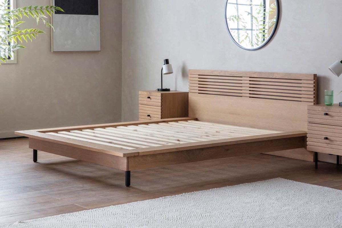 Clean lines and natural materials define the beautifully crafted Yoshino Bedframe. Blending Japanese simplicity with Scandinavian warmth, this Japandi-inspired design brings a sense of calm and understated elegance to the bedroom. Made from solid oak and oak veneers, the bedframe features a striking slatted headboard and refined black tapered legs—offering a light, airy look with plenty of character. It’s the perfect centrepiece for a serene, contemporary sleep space. Available in double and king sizes, the Yoshino Bedframe is delivered flat-packed for ease of access, with the option to add home assembly for a small additional charge. Create a peaceful, minimalist retreat with the natural beauty and modern charm of the Yoshino Bedframe.