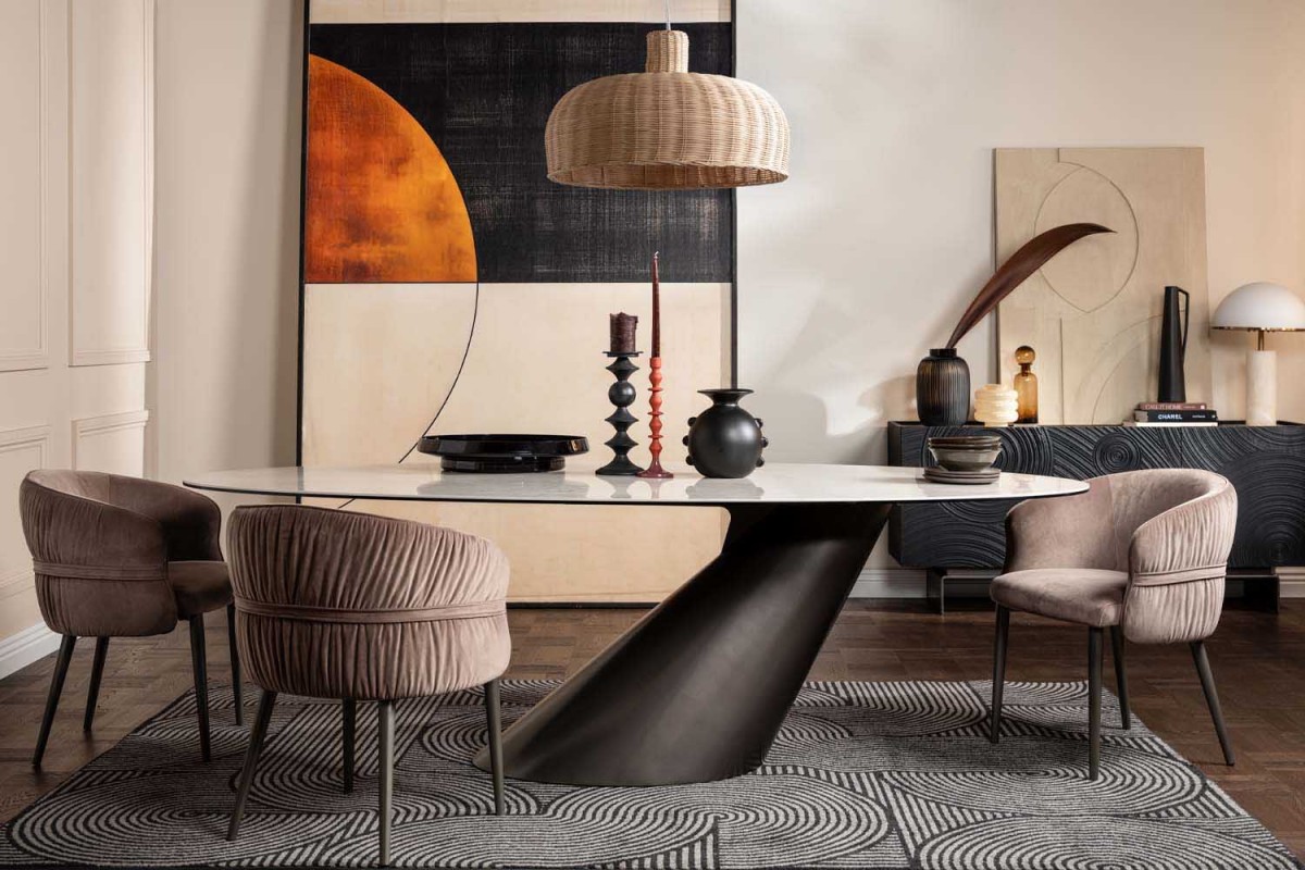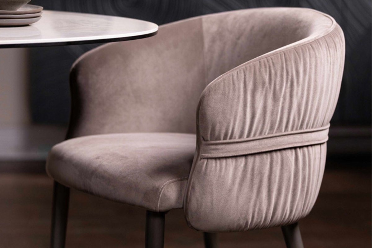 Elegant and contemporary, the Zander Dining Chair brings a touch of sophistication to any dining space. Its gently curved back and softly gathered velvet upholstery offer both comfort and style, while the sleek metal legs add a refined modern edge. Perfect for relaxed dining or long conversations around the table. Pair with our Xavier Dining Table for a striking, cohesive look that blends luxury with everyday practicality.